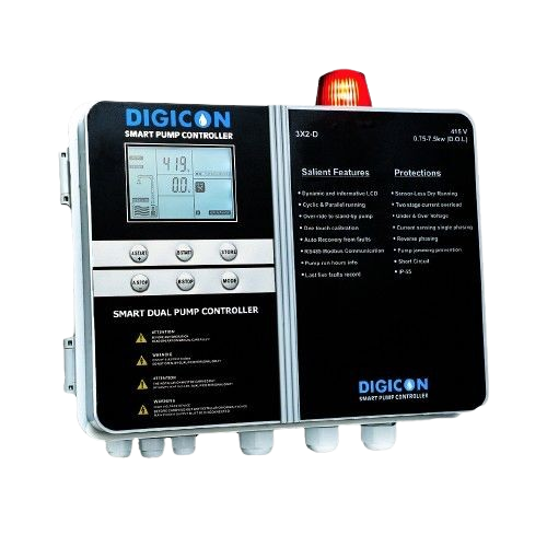 Protects pumps from dry run, overload, voltage fluctuation, and electrical faults.